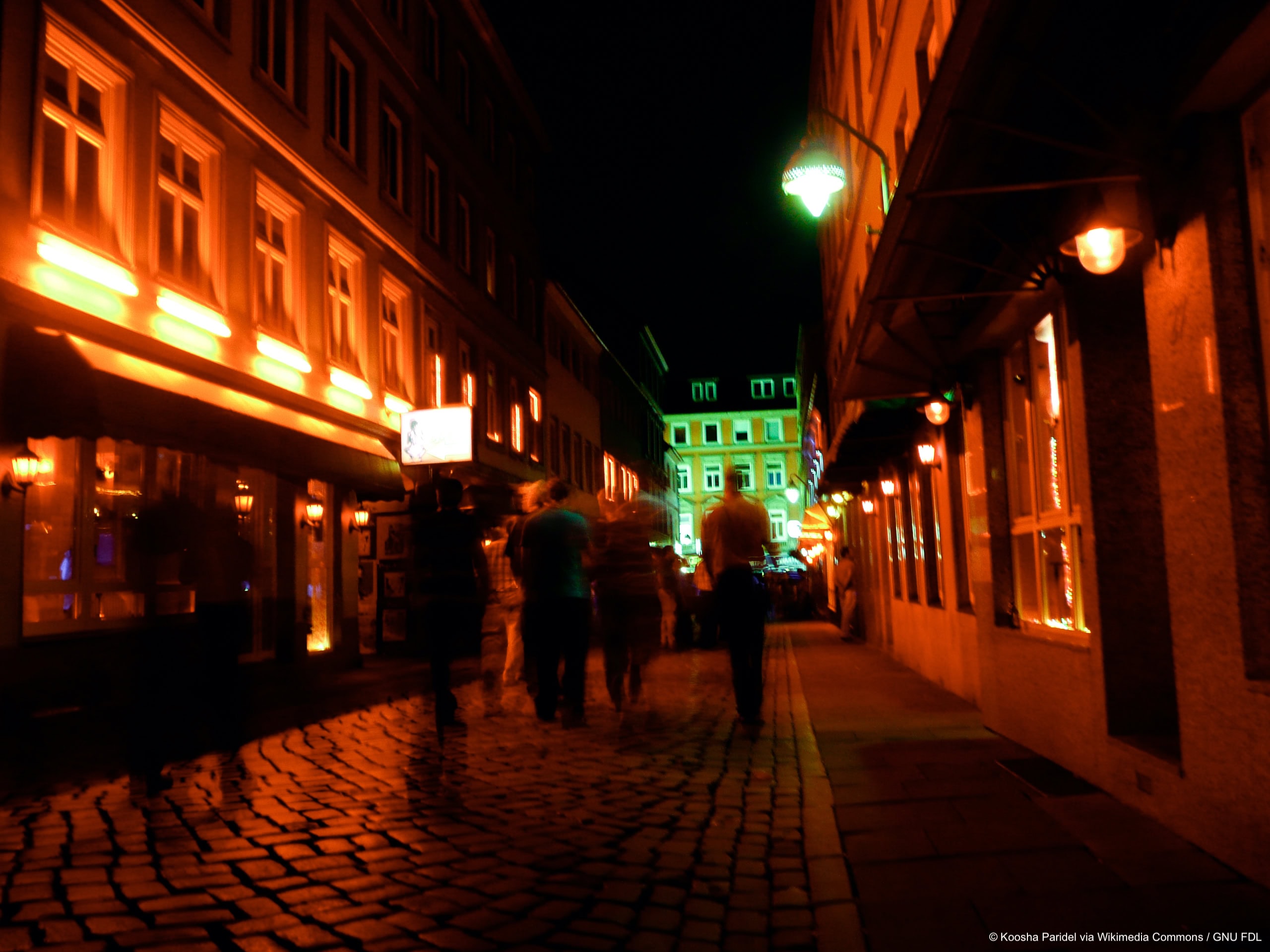 Bei Flaneuren beliebt: die Herbertstraße in Hamburg-St. Pauli bei Nacht.
